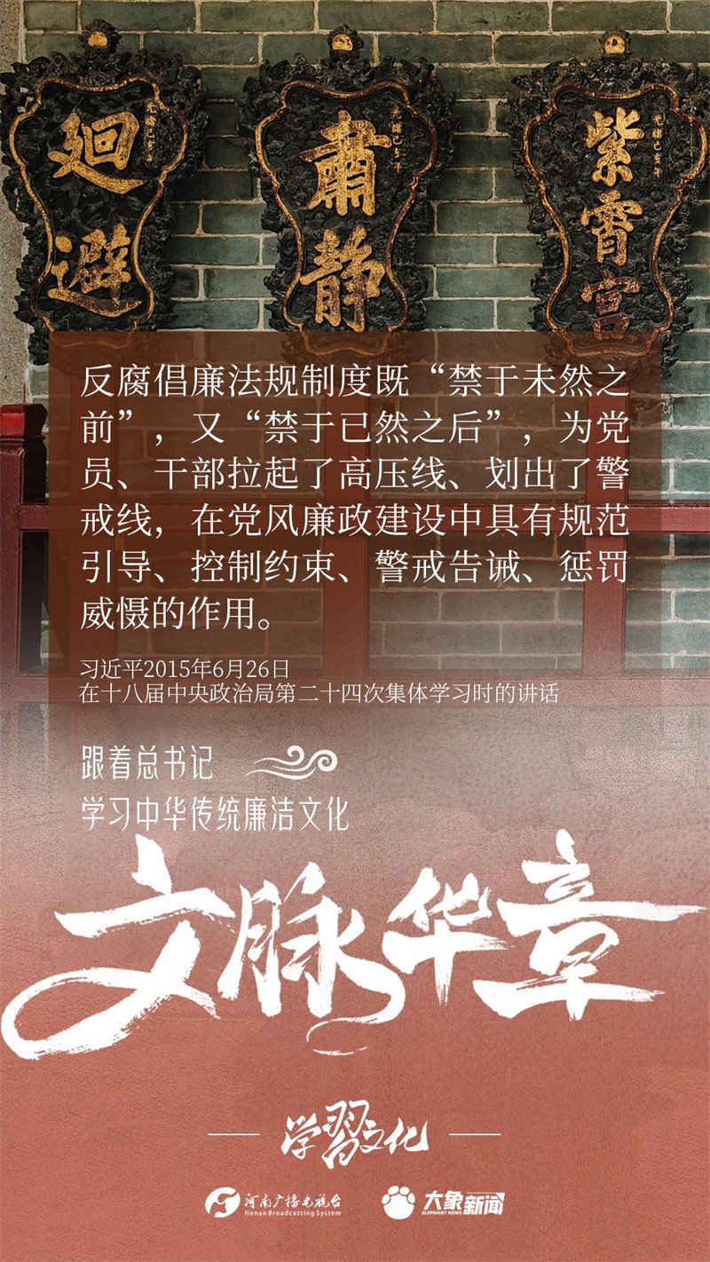 中华优秀传统文化蕴含着丰富的廉洁文化,习近平总书记曾指出:没有中华优秀传统文化、革命文化、社会主义先进文化的底蕴和滋养,信仰信念就难以深沉而执着。总书记常常引经据典,教育引导广大党员干部正心修身,涵养文化,守住为政之本。让我们一起跟着总书记学习中华传统廉洁文化。今天推出第二期。