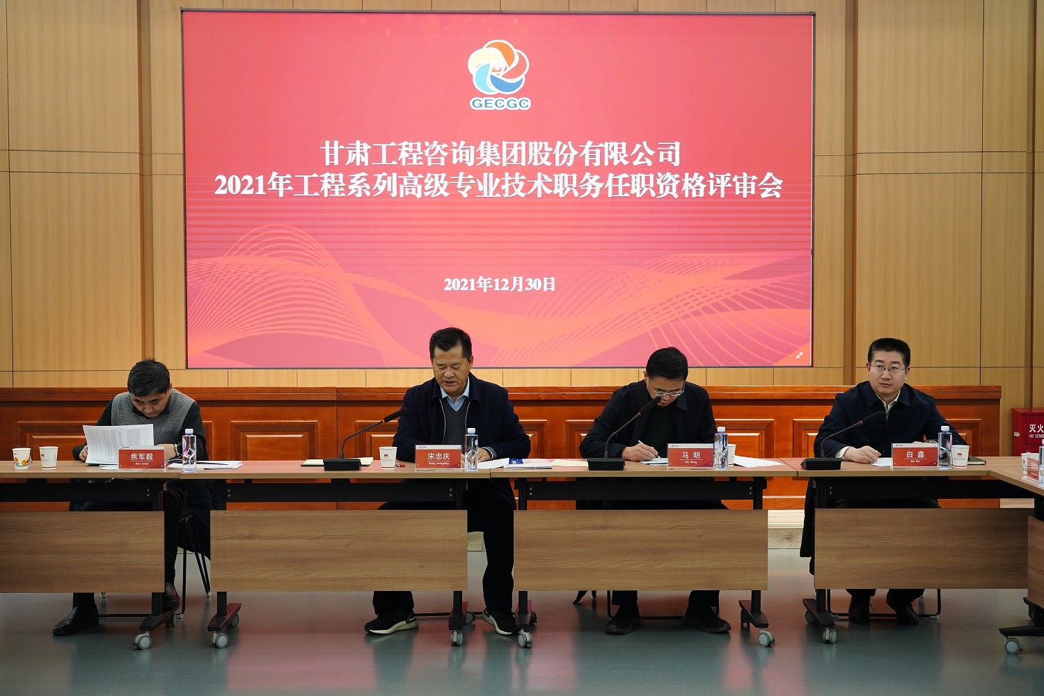 12月30日,金宝慱亚洲体育集团召开2021年工程系列高级专业技术职务任职资格答辩测评及评审会(代评中级),集团公司党委书记、董事长、高评会主任委员宋忠庆,集团公司党委副书记、总经理、高评会副主任委员马明,集团公司党委委员、监事会主席、高评会副主任委员焦军毅,评委会专家及集团公司高评会办公室、纪委,建筑设计院相关人员参加。