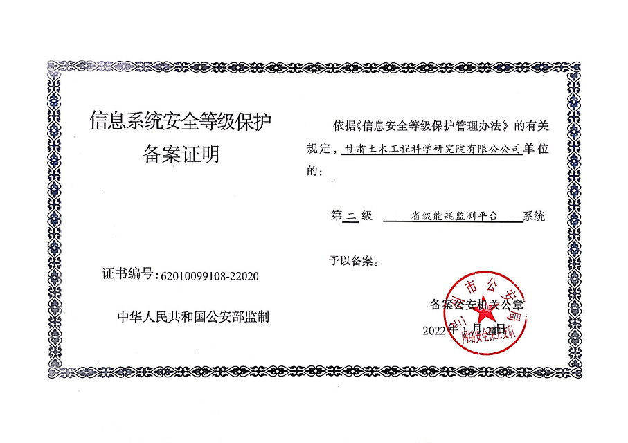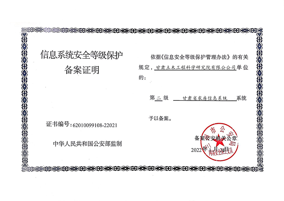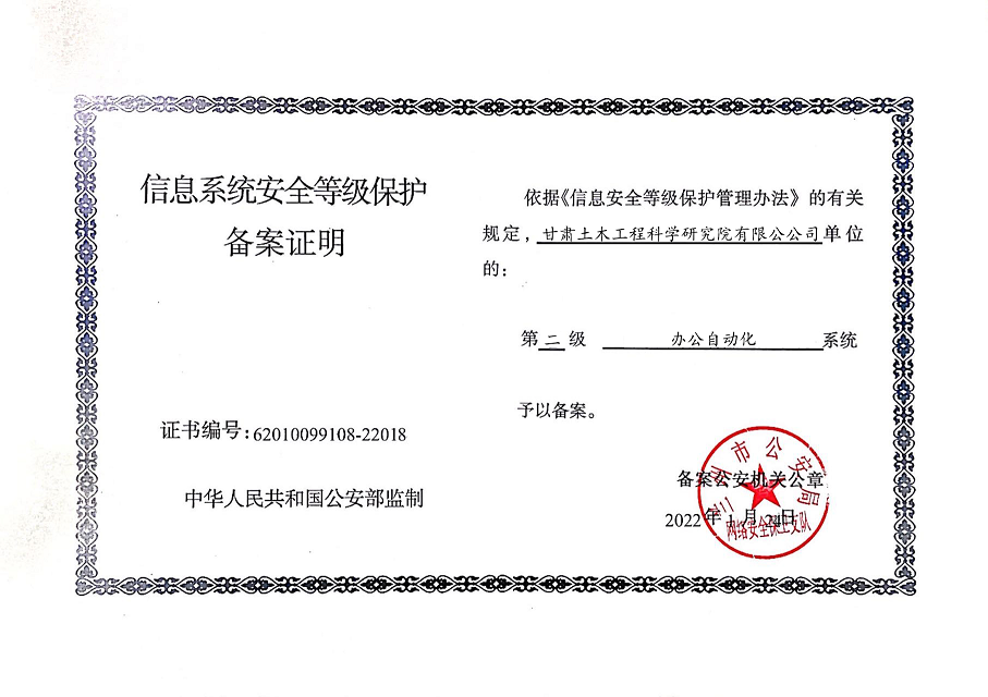 <meta name="description" content="甘肃工程咨询集团股份公司信息系统通过安全等级保护2.0备案认证" />