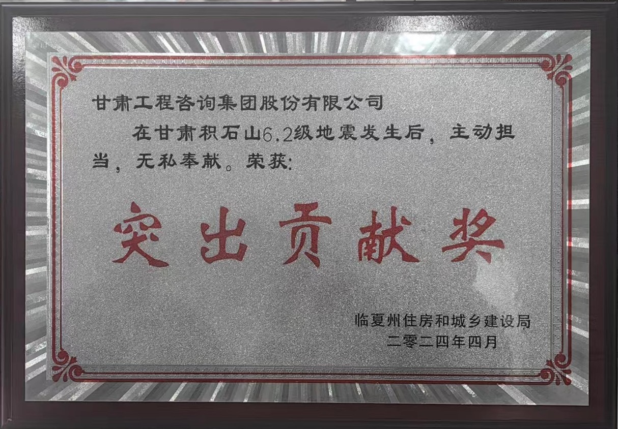 在甘肃积石山6.2级地震后,金宝慱亚洲体育集团主动担当,无私奉献,在应急救援、灾后重建工作中表现突出,被临夏州住房和城乡建设局授予“突出贡献奖”。