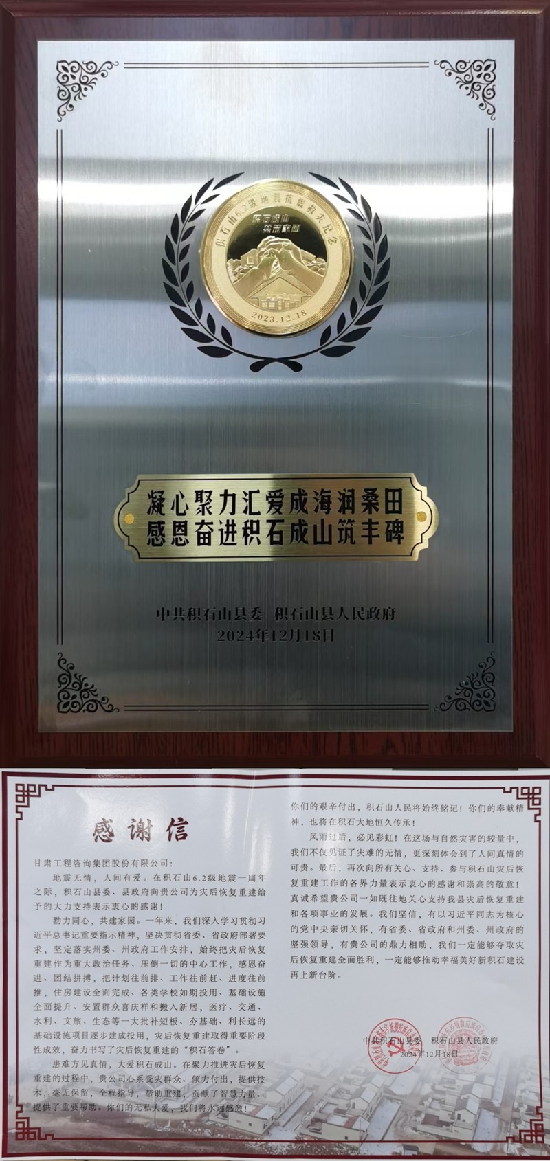 1月22日,时值北方农历小年。中共积石山县委、积石山县人民政府为金宝慱亚洲体育集团送来感谢信,对金宝慱亚洲体育集团在灾后恢复重建给予的大力支持表示感谢,并致以节日问候。