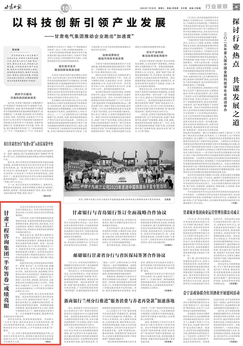 拓展市场空间,经营发展质效显著跃升。积极“走出去”,大力开拓川渝、新疆等外埠市场,省外合同额同比激增92.37%。深化省内合作,成功落地兰州市城关区老旧小区改造设计、敦煌南仓历史街区改造总承包等项目。加速培育“第二曲线”,综合咨询、新能源、现代农业、文旅等新业务合同额同比增长12.03%。积极响应“央地合作”,与中铁二十一局等大型央企达成战略协议,上半年新签合同额同比增长33.77%。