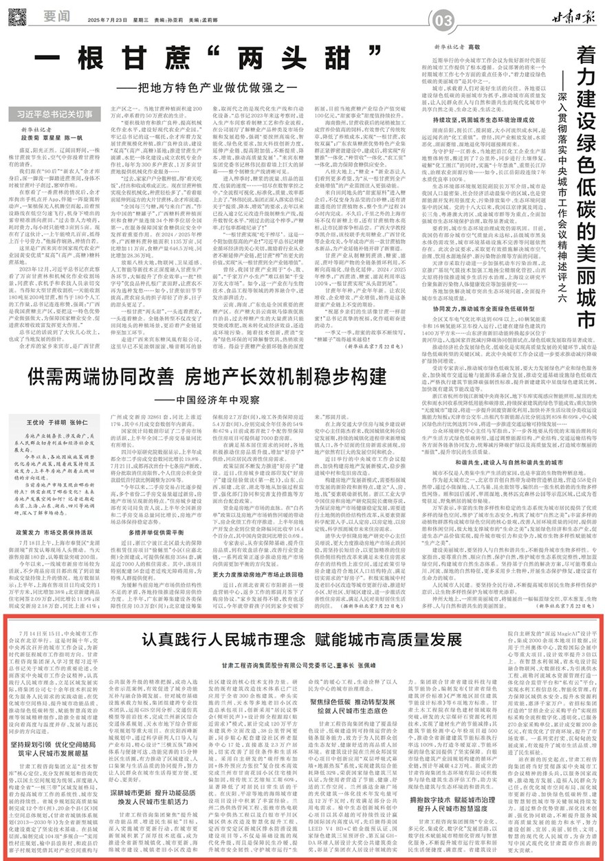 7月14日至15日,中央城市工作会议在北京举行。这是时隔十年,党中央再次召开的城市工作会议,为新时代新征程城市工作指明方向。金宝慱亚洲体育集团深入学习贯彻习近平总书记关于城市工作的重要论述,全面落实中央城市工作会议精神,认真践行人民城市理念,立足区域发展实际,将集团公司七十余年技术积淀转化为服务人民需求的实践动能,在优化城市空间格局、提升城市功能品质、推动绿色低碳转型、赋能智慧高效治理等领域精耕细作,助推全省城市建设向着高度与温度并存、发展与惠民同步的方向迈进。