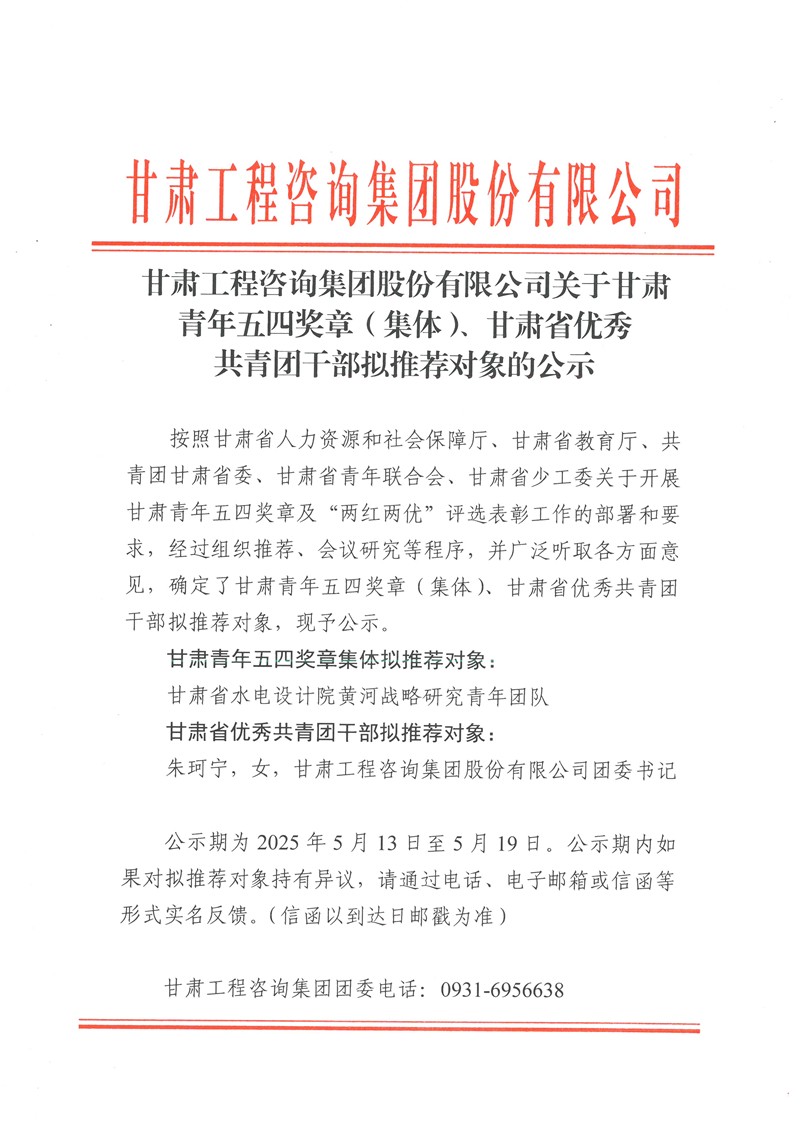 金宝慱亚洲体育集团股份有限公司关于甘肃青年五四奖章(集体)、甘肃省优秀共青团干部拟推荐对象的公示