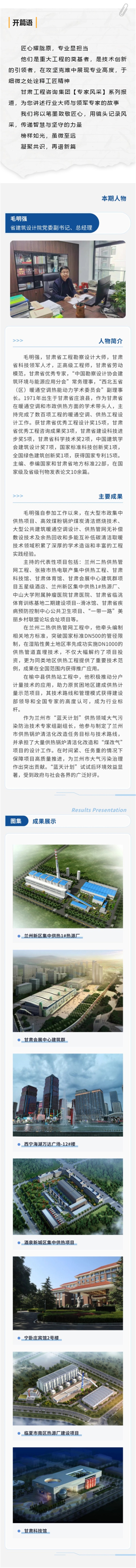 《专家风采》专题报道① | 甘肃省工程勘察设计大师毛明强:深耕热能工程,引领绿色供热,以创新技术守护碧水蓝天