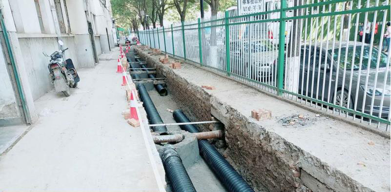 为保障项目高质、高效、高速完成,在短短不到三个月的时间里,公司项目部克服了重重困难、加班加点,集中设计团队和施工团队力量,动态优化设计施工图和工程进度,力争在最短的时间内完成任务,为改善居民生活质量,提高居住幸福感而努力工作。截至目前,已对27个老旧小区进行了全面施工,地下管网工程已完成了工程总量的60%,预计将在9月底完成所有开工小区的地下管网改造。