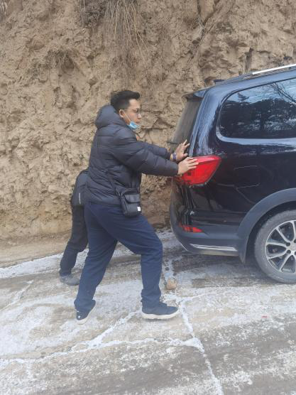 很多在隐患点上的行政村分布在舟曲县周边的大山高处,又逢舟曲刚下完大雪,山路崎岖,道路积雪结冰,即使在车上套上防滑链还是无法到达一些村落。面对重重困难,工程师们没有退缩,当积雪太深或结冰地路面太滑,车辆完全无法通行时,他们或推车前行,或顶风冒雪,深一脚浅一脚地步行好几公里,走到开展工作的村子里去。