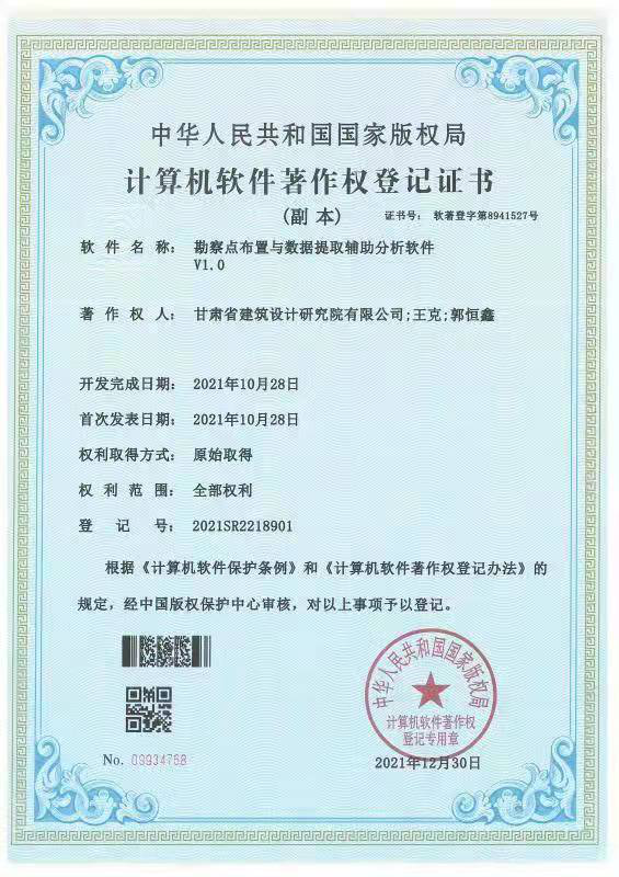 <meta name="description" content="喜报！甘肃省建筑设计研究院有限公司勘察领域软件获国家著作权" />
