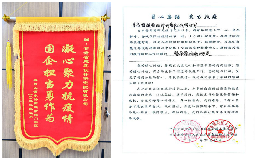 desc: '凝心聚力抗疫情  国企担当勇作为:酒泉路街道向甘肃省建筑设计研究院有限公司赠送锦旗',