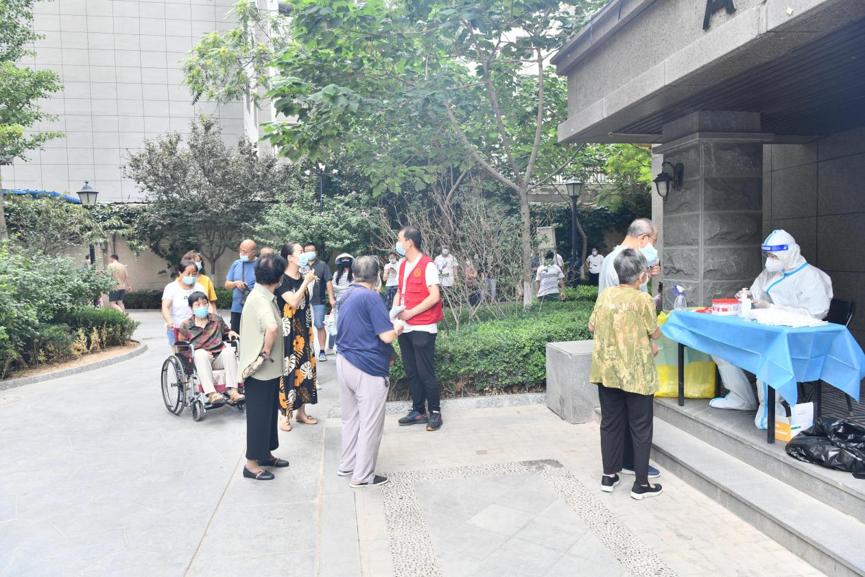 中午时分,志愿者们顶着38℃的高温,穿梭在小区核酸检测采集现场、小区出入口,按照核酸检测要求,引导待测人员佩戴好口罩、保持安全距离、有序排队。他们嗓子哑了也顾不上喝一口水,身上的衣服已不知被汗水浸湿了多少次,却始终没有一个人叫苦叫累,依然努力奋战在核酸采样第一线,用实际行动展示“奉献、友爱、互助、进步”的志愿精神,诠释国企担当。