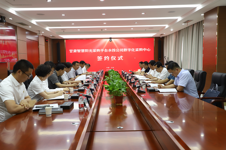 7月6日下午,甘肃省招标咨询集团有限责任公司与甘肃省水务投资有限责任公司举行甘肃智慧阳光采购平台水投公司数字化采购中心签约仪式。甘肃水务集团党委书记、董事长徐崇锋,招标咨询集团党委书记、董事长牛茺出席签约仪式并致辞。甘肃水务集团党委副书记、董事、总经理汪栋与招标咨询集团党委副书记、总经理孙有仙代表双方签约。甘肃水务集团党委委员、副总经理王玉和,招标咨询集团党委副书记、监事会主席、工会主席巨有成,党委委员、纪委书记郑志峰,党委委员、副总经理李兰军,甘肃水务集团及招标咨询集团相关部门负责人参加签约仪式。