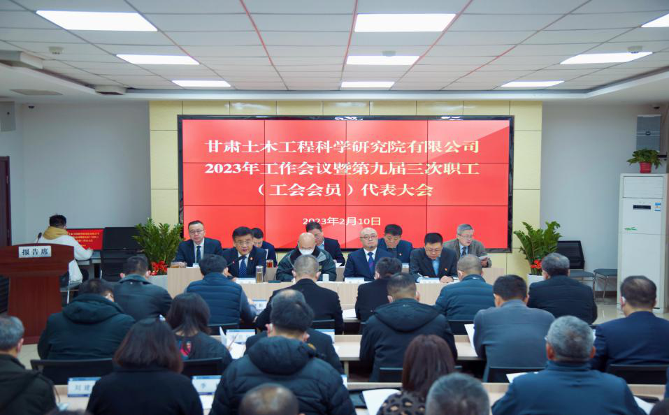2月10日,甘肃土木工程科学研究院有限公司召开2023年工作会议暨第九届三次职工(工会会员)代表大会,集团公司党委委员、副总经理梁建平到会指导。土木工程院董事长曹庆作了题为《蓄力增势、提质增效,主动作为、勇毅前行,奋力跑出高质量发展的加速度》的工作报告,党委副书记、监事会主席、工会主席张磊作了题为《勇毅前行创佳绩,踔厉奋发谱新篇,以党的二十大精神推动工会工作高质量发展》的工会工作报告、工会经费收支情况报告及2022年度财务工作报告。会上对2022年度先进集体、优秀管理者、先进工作者及优秀科技工作者进行了表彰。职工代表、列席代表等64人参加。