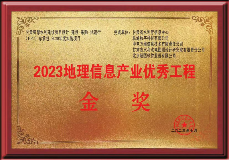 近日,第一届中国测绘地理信息大会在浙江召开。由省水利厅实施、省水电设计院参与完成的“甘肃智慧水利建设项目设计-建设-采购-试运行(EPC)总承包-2020年度实施项目”荣获2023中国地理信息产业优秀工程金奖。