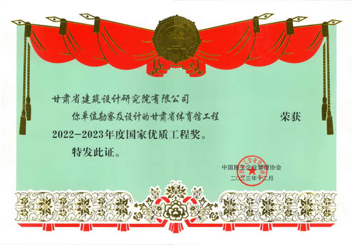 <p style="text-align: justify; text-indent: 2em;"><span style="font-size: 18px;">近日，从中国施工企业管理协会传来好消息，由甘肃省工程勘察设计大师、省建筑设计院总建筑师冯志涛带领团队设计的甘肃省体育馆荣获“2022-2023年度国家优质工程奖”荣誉称号。</span></p><p style="text-align: center"><img src="../../hdupf/img/202401/202401051704450185279405.png"/></p><p style="text-align: justify; text-indent: 2em;"><span style="font-size: 18px;">甘肃省体育馆，位于兰州新区体育休闲文化园区西南侧，西临北斗路，南临纬十六路，东北侧与文曲路隔人工湖（规划）相望，是甘肃省重点工程项目，是目前甘肃省最大、技术标准最高、满足NBA赛事的室内运动场馆，是甘肃省重要的体育文化地标。该项目自开工以来，多次获得“甘肃省飞天奖”“中国钢结构金奖工程”“甘肃钢结构工程金奖”“工程建设项目设计水平评价二类成果”“全国建筑业绿色建造暨绿色施工示范项目”等各类国家及地方奖励，其中智能化表皮获得了国家发明专利。</span></p><p style="text-align: justify; text-indent: 2em;"><span style="font-size: 18px;"></span></p><p style="text-align: center"><img src="../../hdupf/img/202401/202401051704450198107467.png"/></p><p style="text-align: justify; text-indent: 2em;"><span style="font-size: 18px;">据了解，国家优质工程奖设立于1981年，是经国务院确认的我国工程建设领域设立最早，跨行业、跨专业的国家级质量奖。</span></p><p style="text-align: right; text-indent: 2em;"><span style="font-size: 16px;">(责任编辑：杨&nbsp; 虹)</span></p><p>&nbsp;</p><p><br/></p>                        </div>