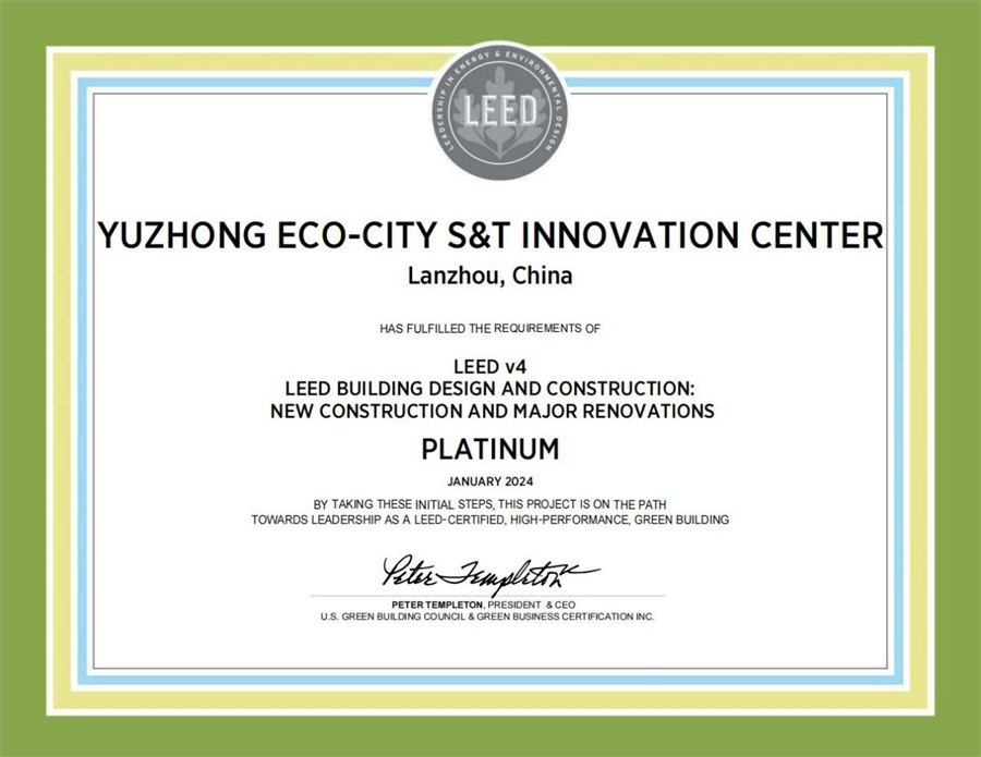 title: '省建筑设计院设计的榆中生态创新城科创中心荣获LEED V4 BD+C铂金级预认证',