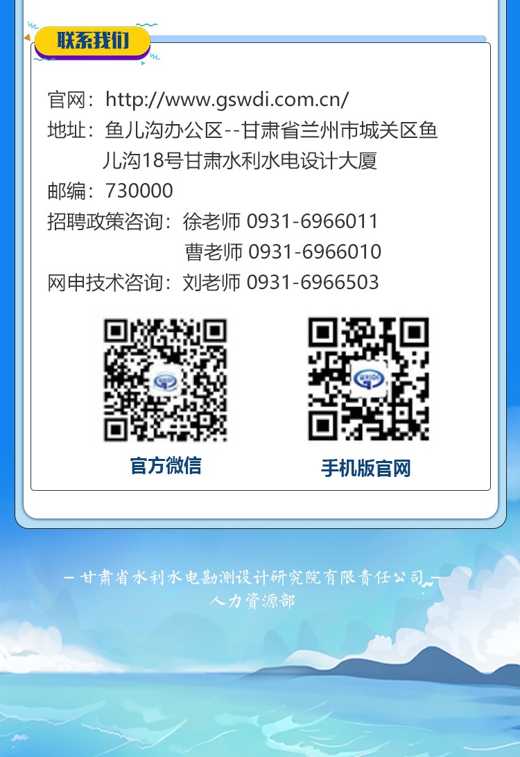 甘肃省水利水电勘测设计研究院有限责任公司招聘公告