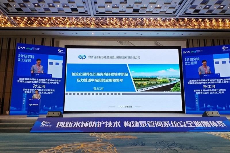省水电设计院相关专家团队应邀参会并发表主旨演讲,介绍了公司在长距离高扬程泵站工程中的创新防护技术成果。同时,针对“管道负压控制标准”“水锤在线监测系统建设”等行业痛点问题,提出前瞻性思考与展望,引发与会专家热烈讨论与高度关注。