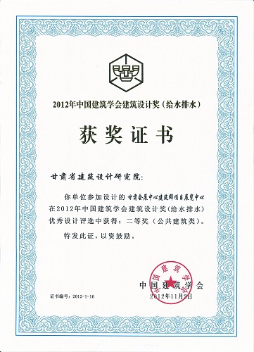 2012年中国建筑学会设计奖甘肃会展中心(给排水)