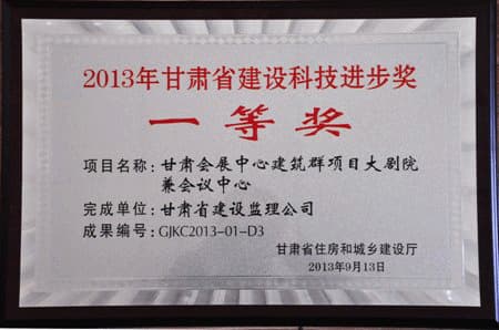 2013年甘肃省建设科技进步奖一等奖