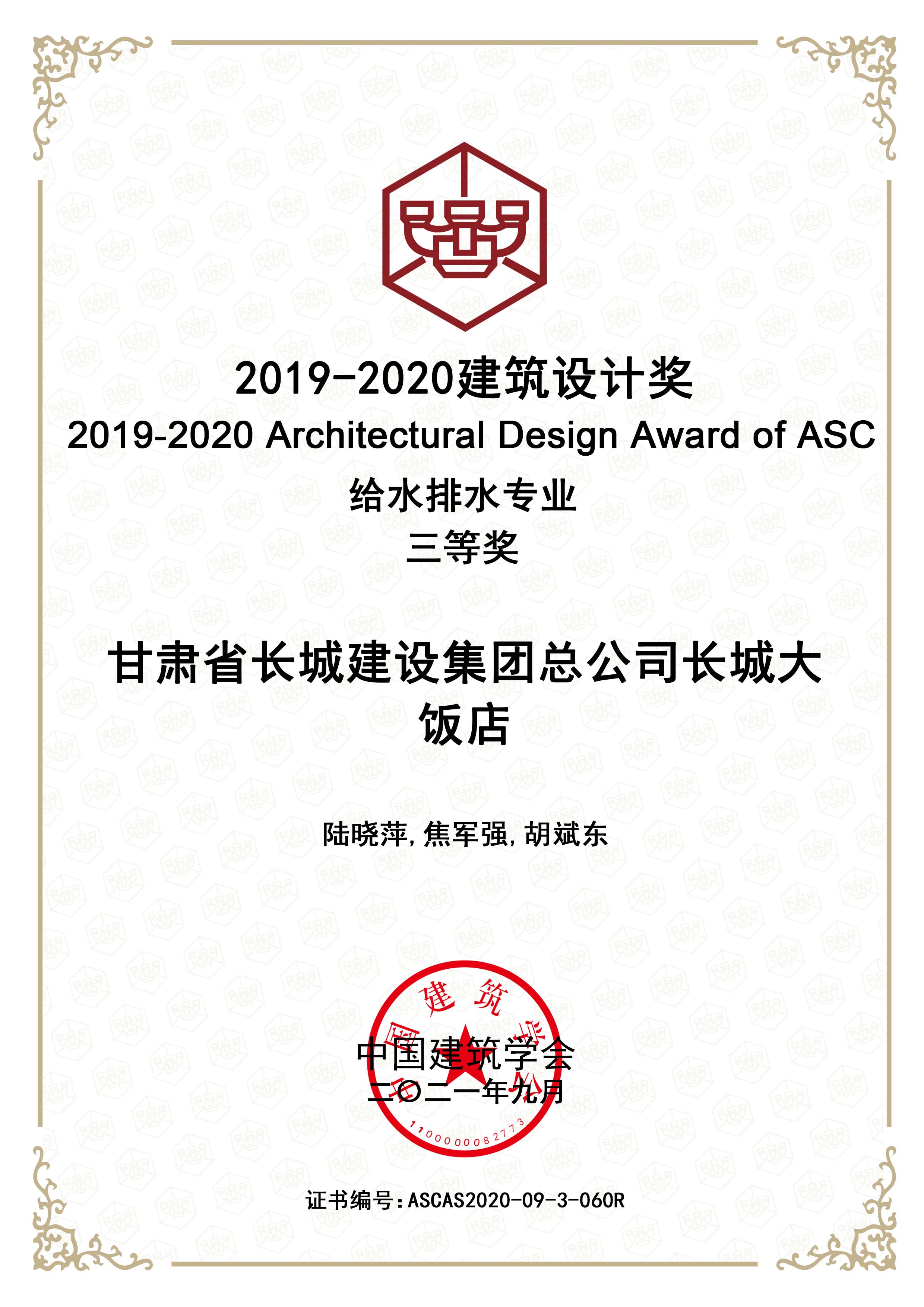 2019—2020建筑设计奖给排水专业三等奖
